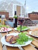 Мероприятия: проводятся, чаще всего, на улице. Мебель выносится на открытые террасы. В случае непогоды события проводятся в геокуполе, вместимость которого до 40 человек. Если на вашем событии более 40 человек - возможно, вы захотите взять в аренду дополнительные шатры (У сторонних организаций или привезти свои. Дополнительной оплаты за факт установки шатров нет).